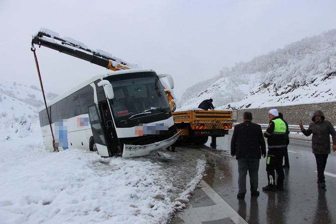Karda Kayan Istanbul Rize Seferini Yapan Yolcu Otobusu Yoldan Cikti