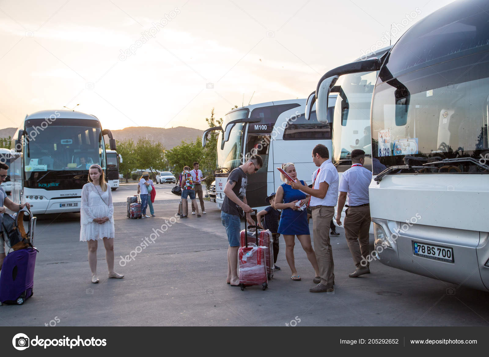 Dalaman Turkey May 19 2018 Tourists And Guide Near Bus Stopping Stock Photo Picture And Royalty Free Image Image 108087239