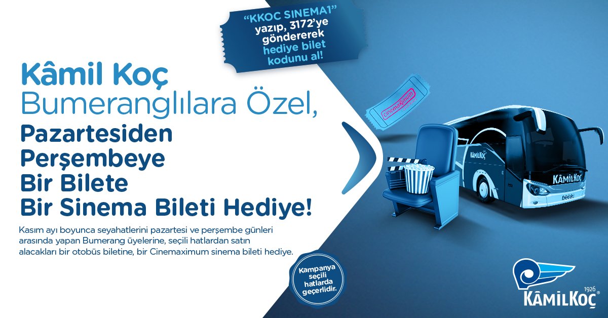 Kamil Koc Pa Twitter Kamil Koc Bumerang Uyelerine Bir Firsat Daha Pazartesiden Persembeye 1 Otobus Bileti Alana 1 Sinema Bileti Hediye Https T Co Ybvil7sfbl Https T Co Yef9cxork3